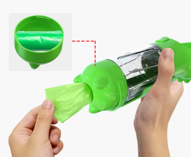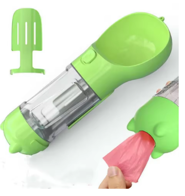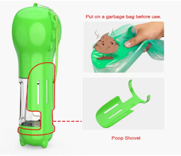 Botella de agua para perros con múltiples funciones: agua para que tu mascota te acompañe en un viaje o caminata. Además, la pala y la bolsa de plástico incluidas hacen que sea fácil de limpiar después de tu mascota.
