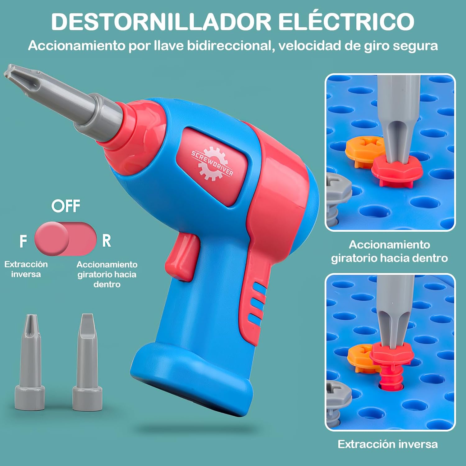 Conjunto Completo y Multifuncional: incluye herramientas, tornillos, placas y figuras para armar y desmontar fácilmente.